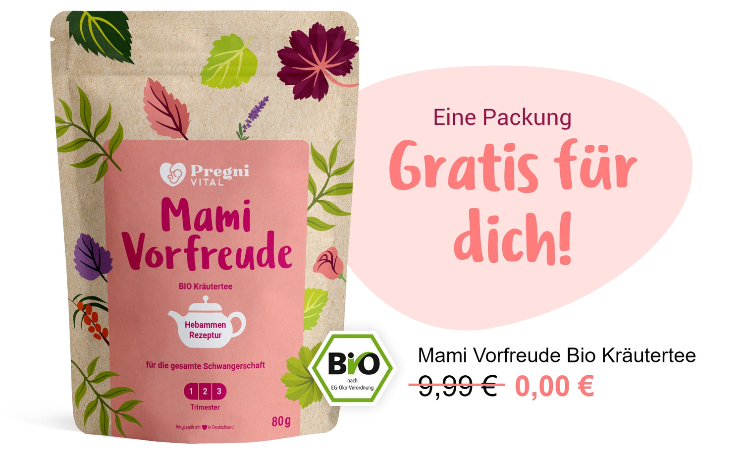 Als kleines Dankeschön wollen wir dir gerne einen kostenlosen Mami Vorfreude Tee schenken.